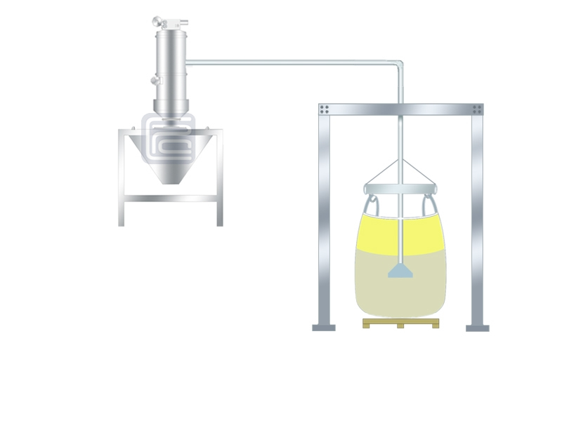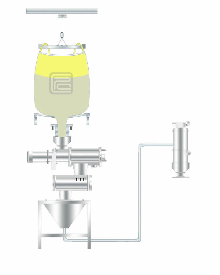 说明:此种吸料方式是由下往上吸料,拆包机下部出口需加装补气装置。